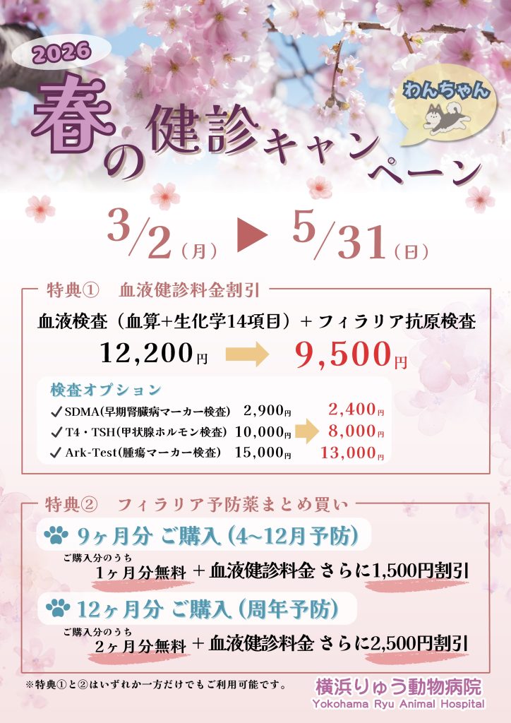 毎年ご好評いただいております春の健診キャンペーンを、今年も